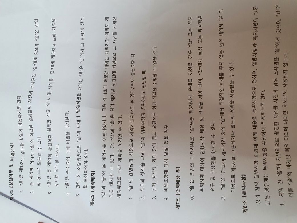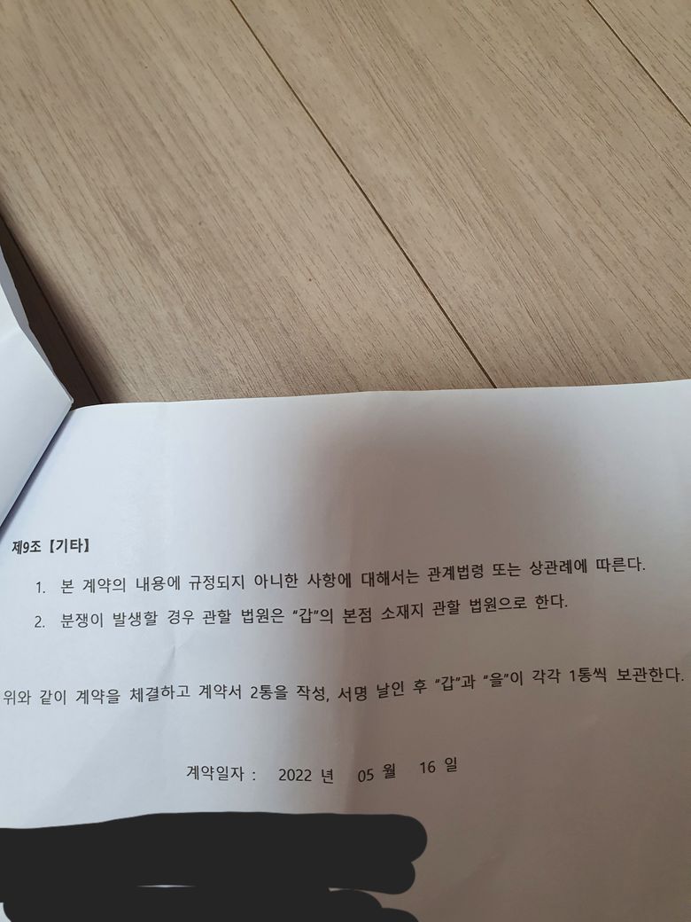아래에 제가 받은 계약서 첨부 해놨으니