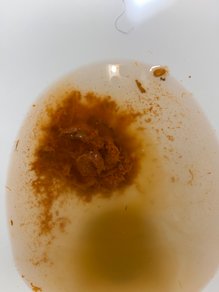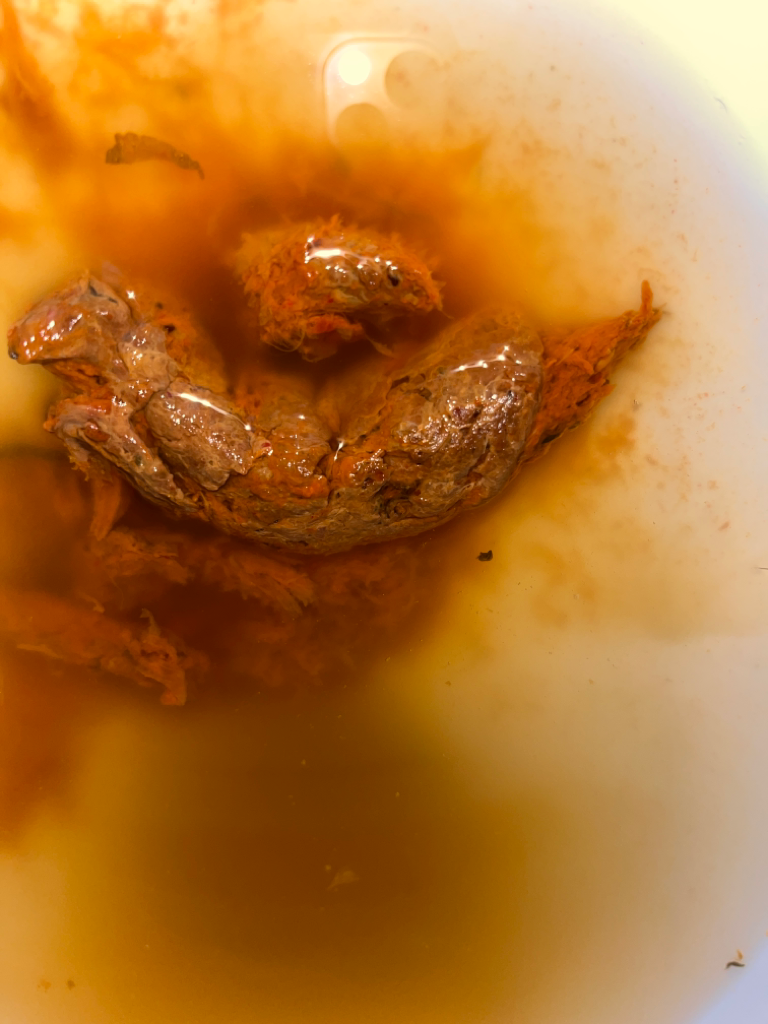 사진에서 혈변은 관찰되지 않고, 색이 붉어보이는 것은 음식물의 영향일 것으로 추정됩니다.