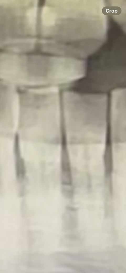 안녕하세요, 세달 전에 치과에 갔을때는 없었던거 같은데 오늘 양치하고 보니 앞니 사이 윗부분에 어두운 색이 보이는데요, 이게 뭘까요? 단순 변색일까요? 세달전 찍었던 엑스레이도 첨부합니다