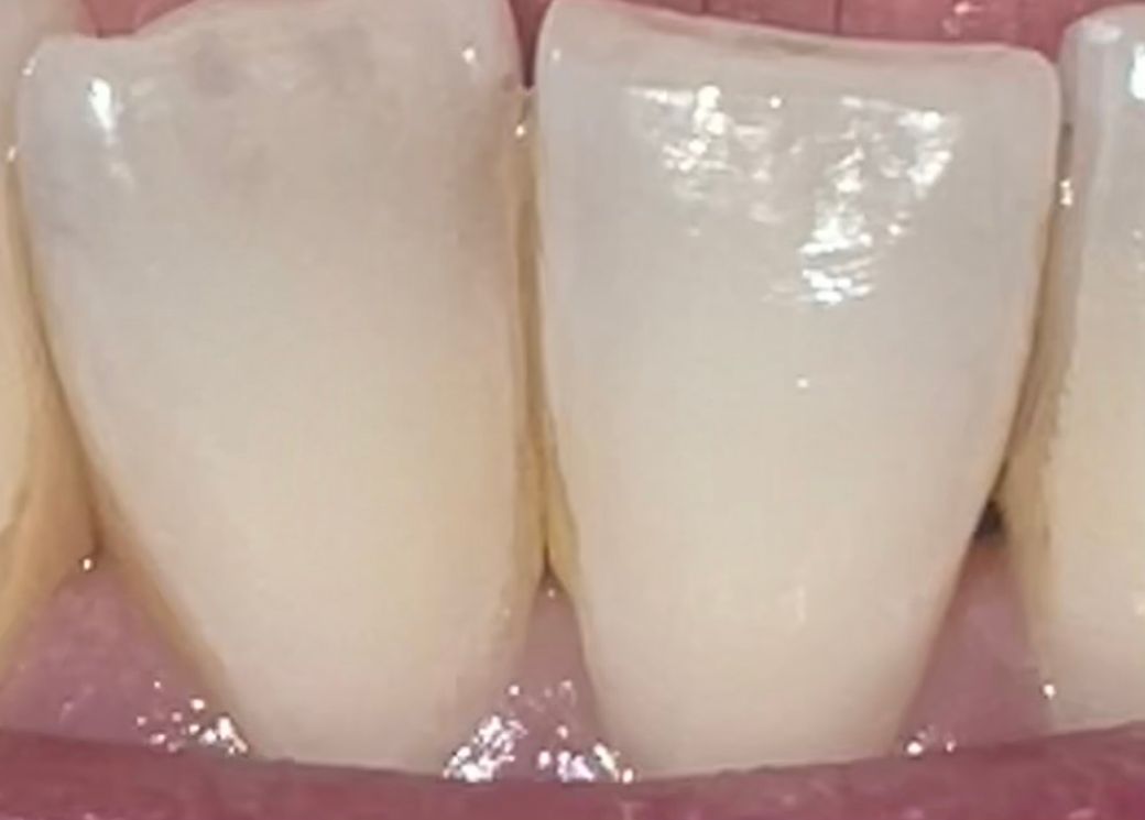 앞니에 어두운 부분이 있는데, 뭘까요?