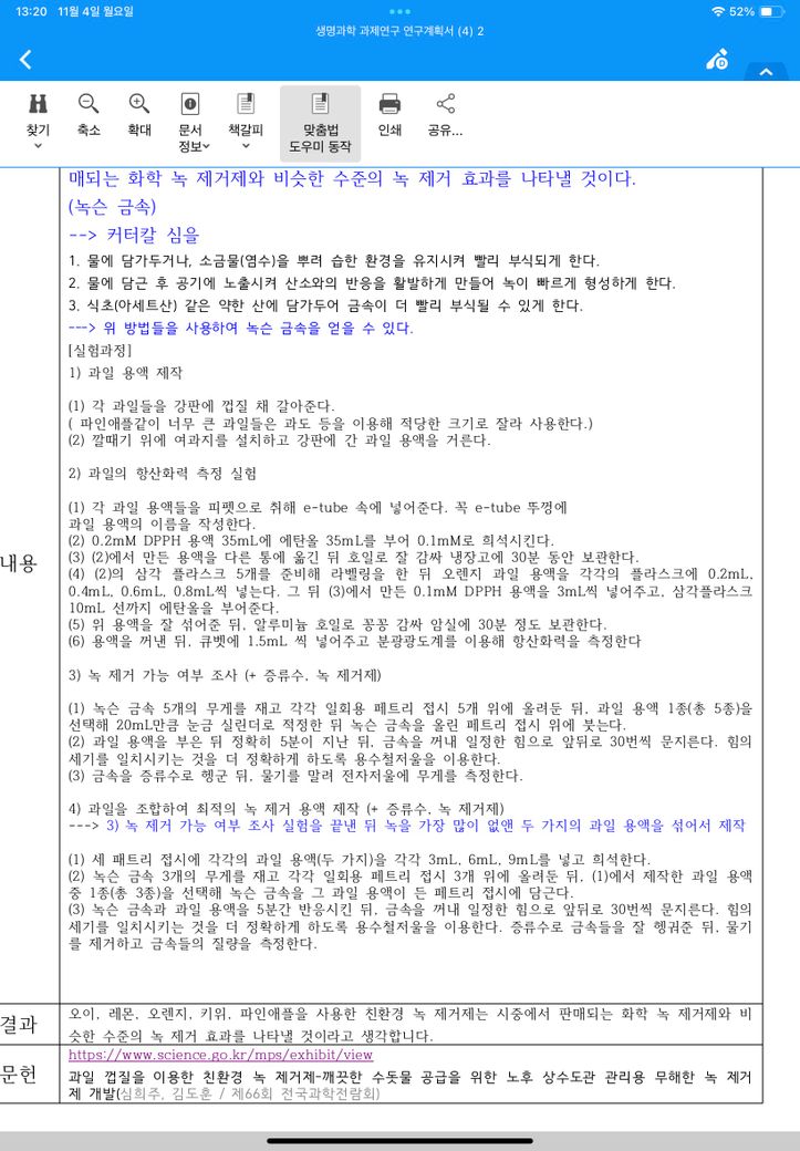 실험 중에 D P P H 용액을 넣고 에탄올를 넣고 랩으로 감싼 뒤 30분 동안 어두운 곳에 넣어 쓰라고 했는데
