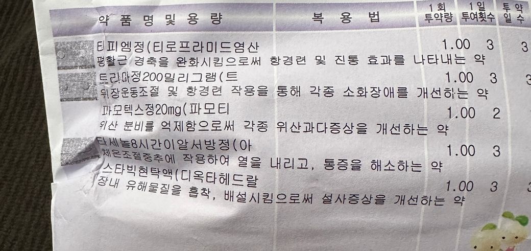 장염약을 복용하고나서 타이레놀 1알은 추가하셔도됩니다.