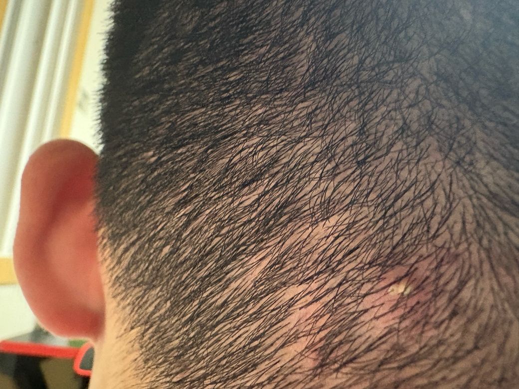 올려주신 사진상 지루성 두피염과 함께 모낭염이 합병된 것으로 보입니다. 지루성 두피염은 진균 감염에 의해서 발생하는 경우가 많아 니조랄 샴푸를 주 2회 2주 정도 사용해 보시는 것이 도움이 되는데 이러한 조치에도 호전이 없다면 지루성 피부염에 대한 치료가 필요합니다. 지루서 두피염이 조절되지 않을 경우 모낭염이나 농양이 발생할 수 있기 때문에 이러한 질환을 먼저 치료해주는 것이 중요합니다. 니조랄 샴푸를 사용해 보시고 호전이 없다면 피부과 진료를 보시는 것을 권해드립니다.