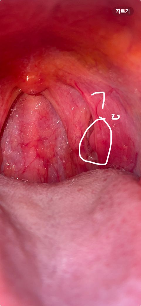 아래 표시된 부분이 정상 구개편도모양중 하나 일까요? 혹이 생겨 암가능성이 있는지 궁금합니다. 전문의 선생님께서 알려주시면 감사하겠습니다ㅠㅠ