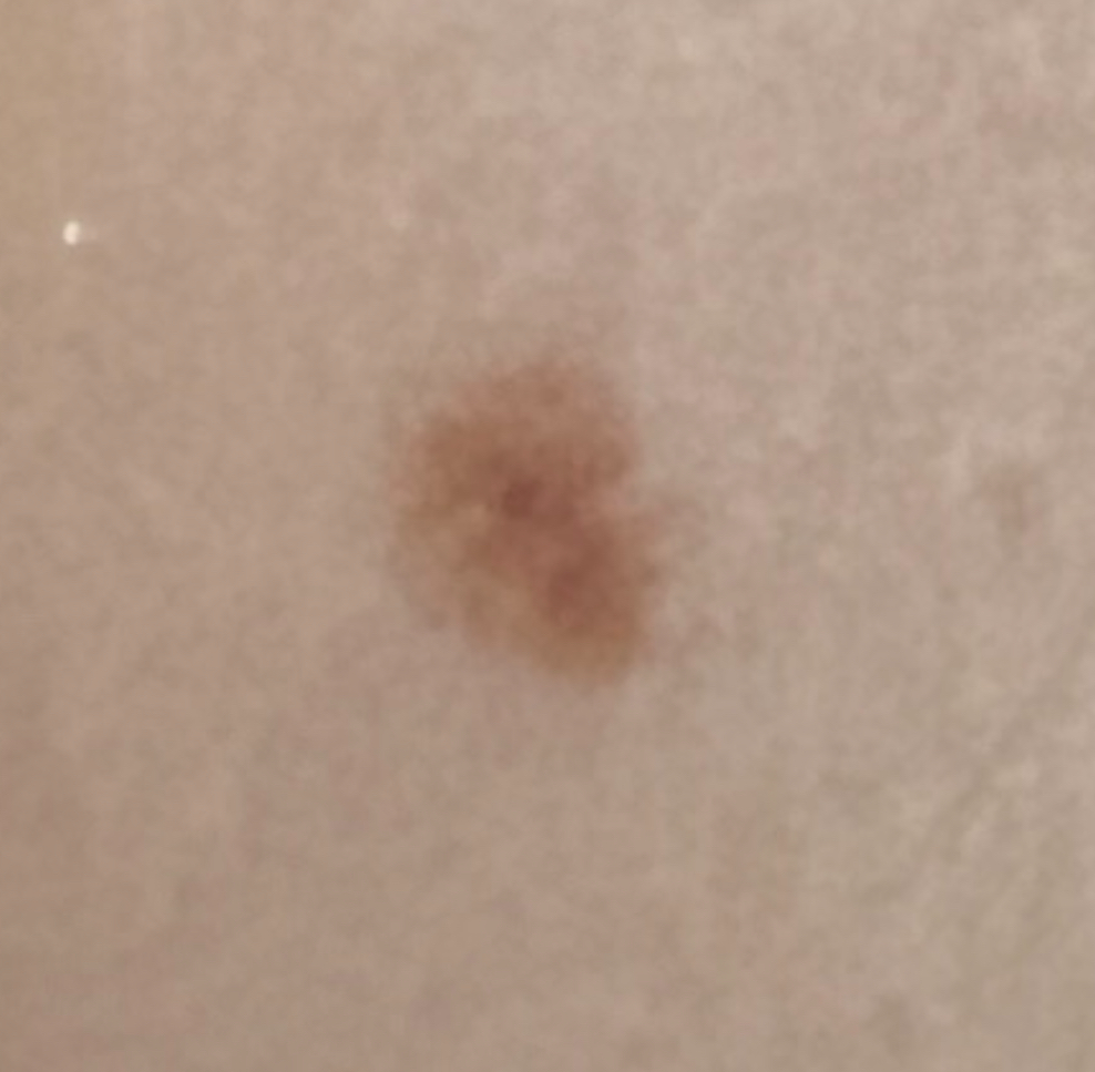 사진의 소견을 보았을 때는 단순 점이나 색소 침착 같은 문제일 가능성이 높아보입니다. 흑색종이 강력하에 의심되는 소견은 아니지만 걱정되신다면 피부과에서 진료 및 검진 받아보시길 권고드립니다.