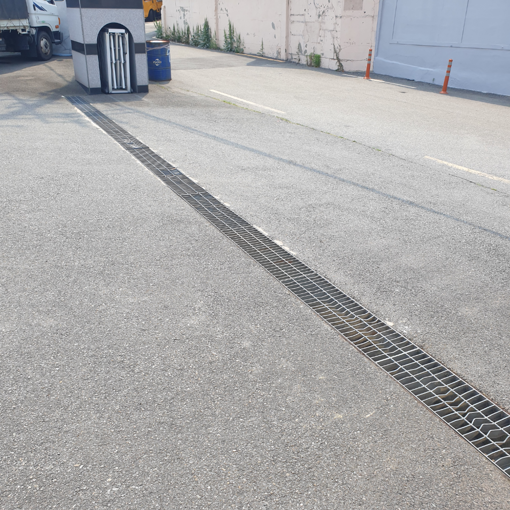 출입구쪽 수로관은 비가 내릴때 고이거나 침수를 예방하기 위해서 입니다.