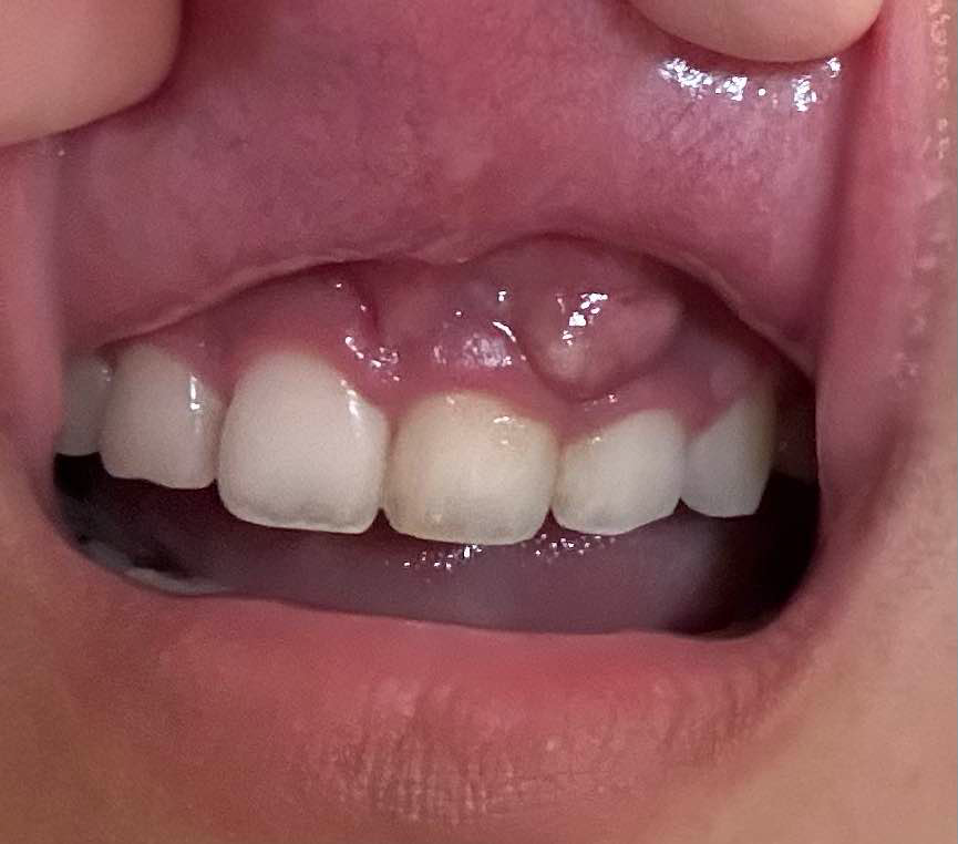 치아 안에 신경에 염증이 생기거나 감염이 생기면 치아의 뿌리 쪽에 고름이 차게 되는데 이 고름이 많아지게 되면인문 밖으로 나오는 경우가 있습니다.