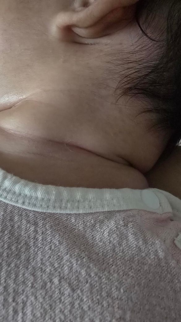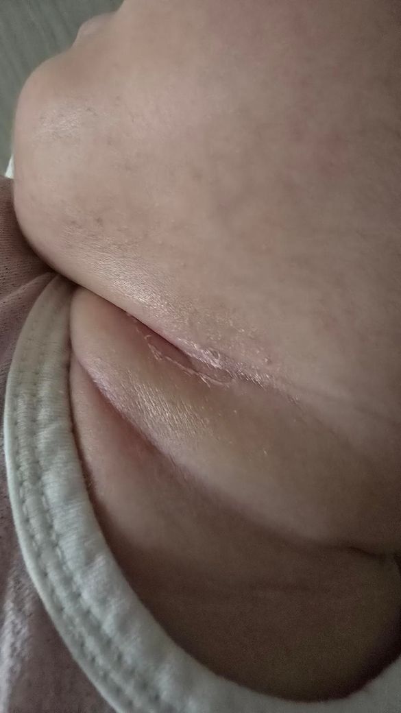사진상 아기 목 주름 부위는 전형적인 피부 접촉 부위 습진, 즉 intertrigo 양상으로 보입니다. 침, 분유, 땀 등이 고이면서 피부 장벽이 약해지고, 마찰이 반복되면서 짓무름이 진행된 상태로 판단됩니다. 현재처럼 범위가 넓어지는 경우는 단순 자극성 피부염에서 2차 감염, 특히 칸디다 같은 진균 감염이 동반되는 경우도 고려해야 합니다.