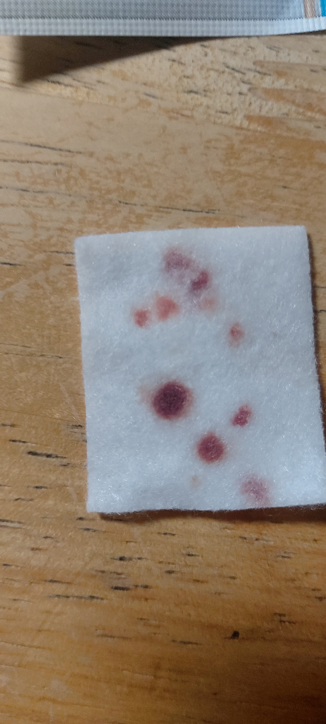 안녕하세요 선생님 다름이아니오라 오늘 집에서 당측정을 하였습니다 다행스럽게 당수치는 정상이였는데 소독솜으로 지혈할려고 꽉 눌렀습니다 그런데 색상이 이렇습니다 피색상의 주변이 노랗게 되었습니다 그래서 혹시나 하여 다시 채혈침으로 누르고 동일하게 꽉누르니 노란게 없습니다 혹시 큰일인지요? 응급실에 가봐야하는지 아님 혈액외과에 가야하는지요?