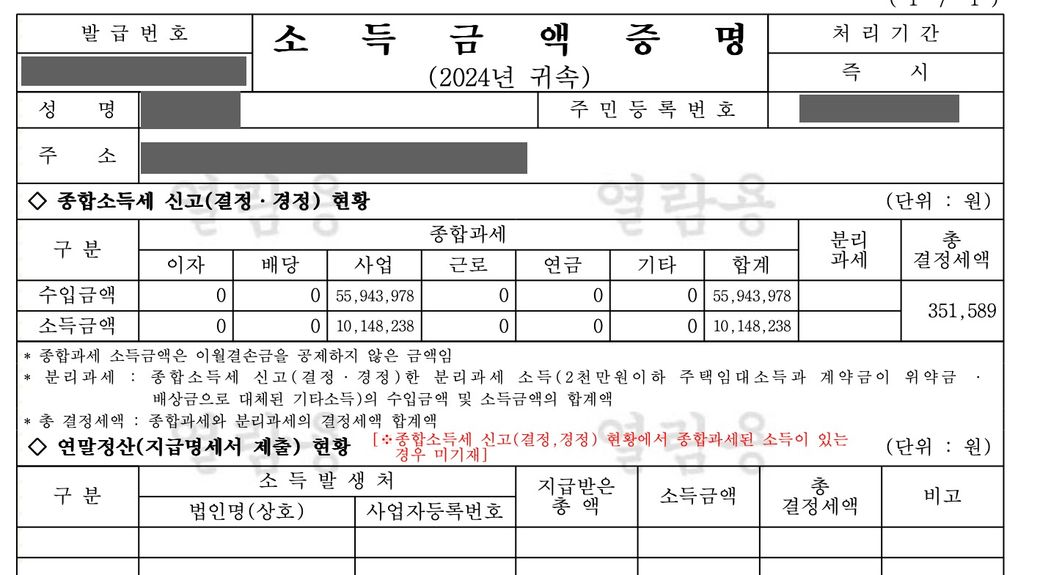 사진에 나와있는 증명서에서 수입금액과 소득금액을 합산하여 12로 나눠야하나요??