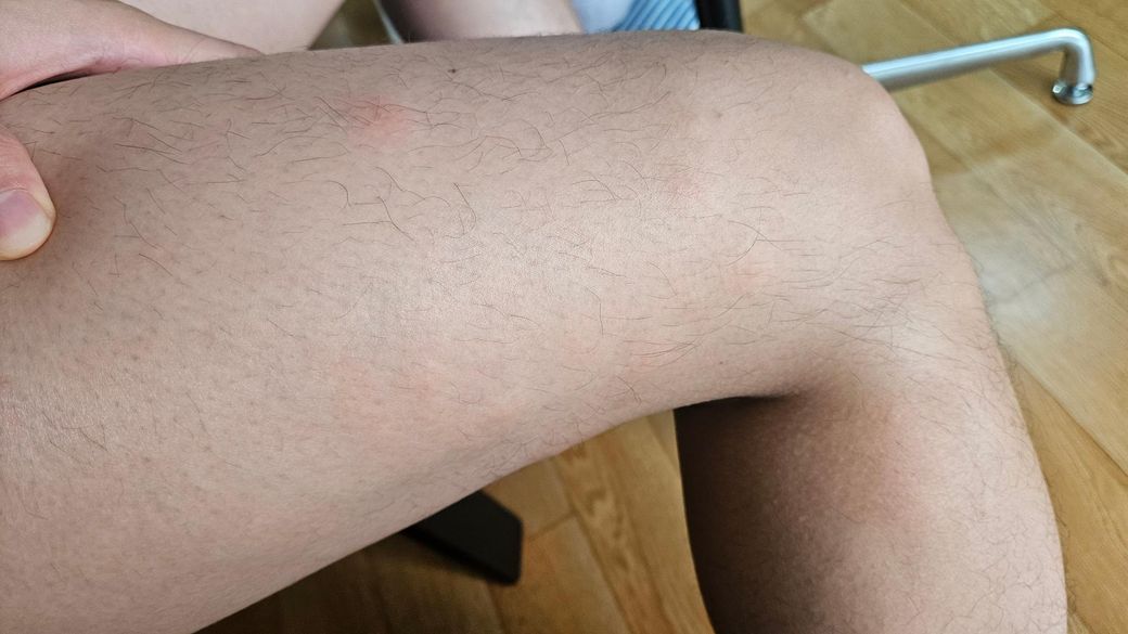 오른쪽 허벅지에 빨갛게 여러군데 올라왔습니다.