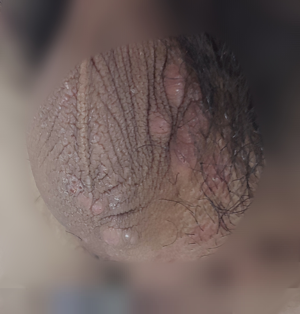 성기 부위의 모낭염 같은 문제의 가능성이 있어 보이는 소견인데, 솔직히 해당 사진들만 놓고 정확하게 감별할 수는 없습니다. 성관계를 한 적이 없다면 성병일 가능성은 현실적으로 크게 없어 보이며, 관련하여서는 비뇨의학과에서 진료를 받고 적절한 처방을 통해서 치료를 하시는 것을 권고드립니다.