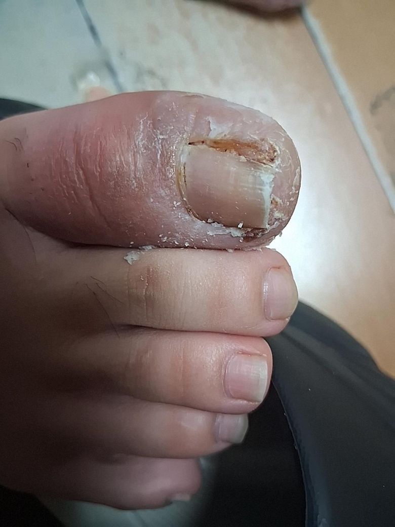 발목인대재건술 후 검진으로 타병원에 내원하여 상태를 확인해 보니 염증이 너무 심하여 발톱을 전체 제거를 해야 한다고 합니다.