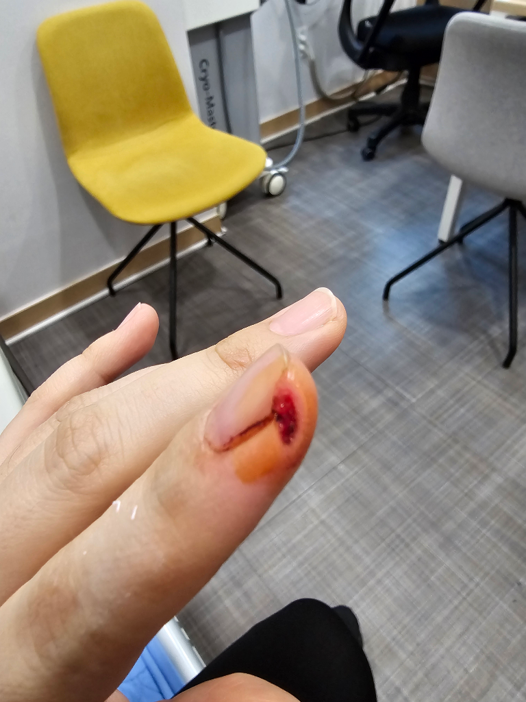 어제 낮에 칼에 손톱과 살점이나갔습니다.