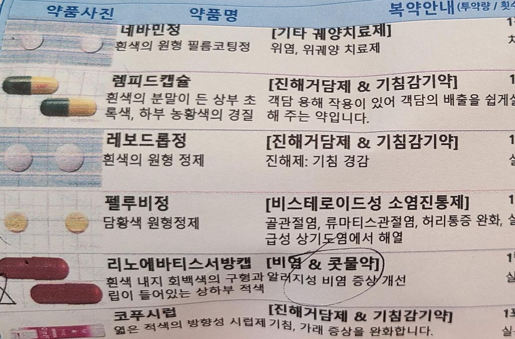 사진으로 보여주신 약에 "펠루비정" 이라는 소염진통제가 이미 들어있기 때문에,