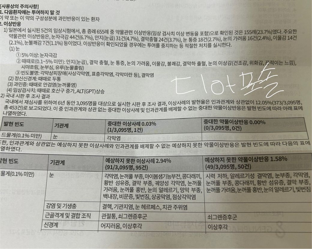 이 두개 처방받았는데, 한달 쓰고 다시 안과 방문하하고 해서 찾아보다가 스테로이드 성분 있는 안약은 장시간 투여하면 안 좋다고 하더라구요. 그래서 제가 처방받은 안약에 그 성분이 있는지 질문드립니다밑에 있는 안약 성분표? 보시고 알려주세요그리고 두 점안약에 모두 염산이 들어있는데 괜찮은 건가요..? 두 안약 모두 하루에 4회 넣으라 하는데 괜찮은 건지 여쭤보고 싶습니다. 이 약이 2주동안 써야 되는 건데 만약 스테로이드 성분이면 2주 쓰는거는 별로 안 좋을까요? 그럼 어느정도 쓰고 투여 중단해야 되나요?그리고 디아포솔 점안액 이거 이상반응 겪은 사람이 많아 보이는데 투여해도 되는건지요.. 혹시 다른 대체제 있나요... 그리고ㅠㅠ 안과 방문한지 2주정도 됐는데 처방받은 점안액이나 인공눈물 넣고 약도 먹고 그랬는데 아직도 눈에 염증이 있다고 해서요. 원래 이렇게 오래 가나요? 1달 전쯤에는 다른 안과에서 다래끼 있다고도 했었어요 다래끼는 지금 없는 것 같고요 알러지 증상도 있대요 눈에..다른 안과도 방문해봐야 되나요? 나름 큰 곳? 간건데1개의 답변이 있어요!