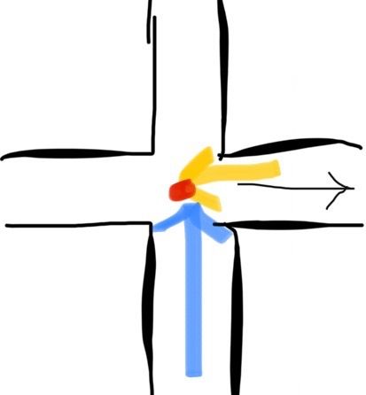 일방통행길 끝난 후 조그만한 사거리에서 교통사고가 났는데 과실 비율은?