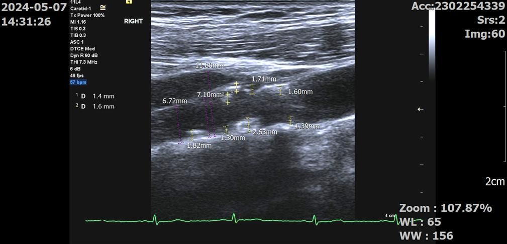 우측 경동맥 내경 또한 어떻게 보는 것인지 몰라서 세 군데 재봤습니다.