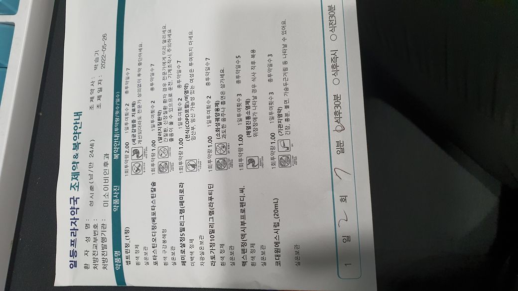 사진이 잘 보이지 않습니다. 아마 증상에 맞춰서 약을 주셨을 겁니다.