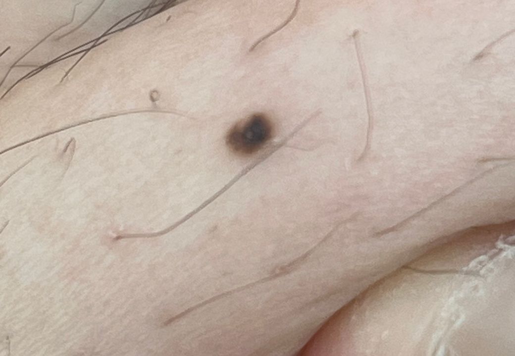 어렸을 때부터 허벅지 위에 있던 점인데 우연히 보니 조금 더 진해진 것 같아서요. 자세히 들여다보면 진한 검정? 색입니다.