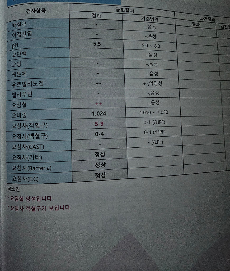 요잠혈 양성은 현미경적 혈뇨가 의심된다는 뜻인데요. 피곤해도 일시적으로 나타나거나 생리 전 또는 끝날 시기 쯤 검사시에도 나올 수 있습니다. 1개월 후 추적검사를 권합니다.