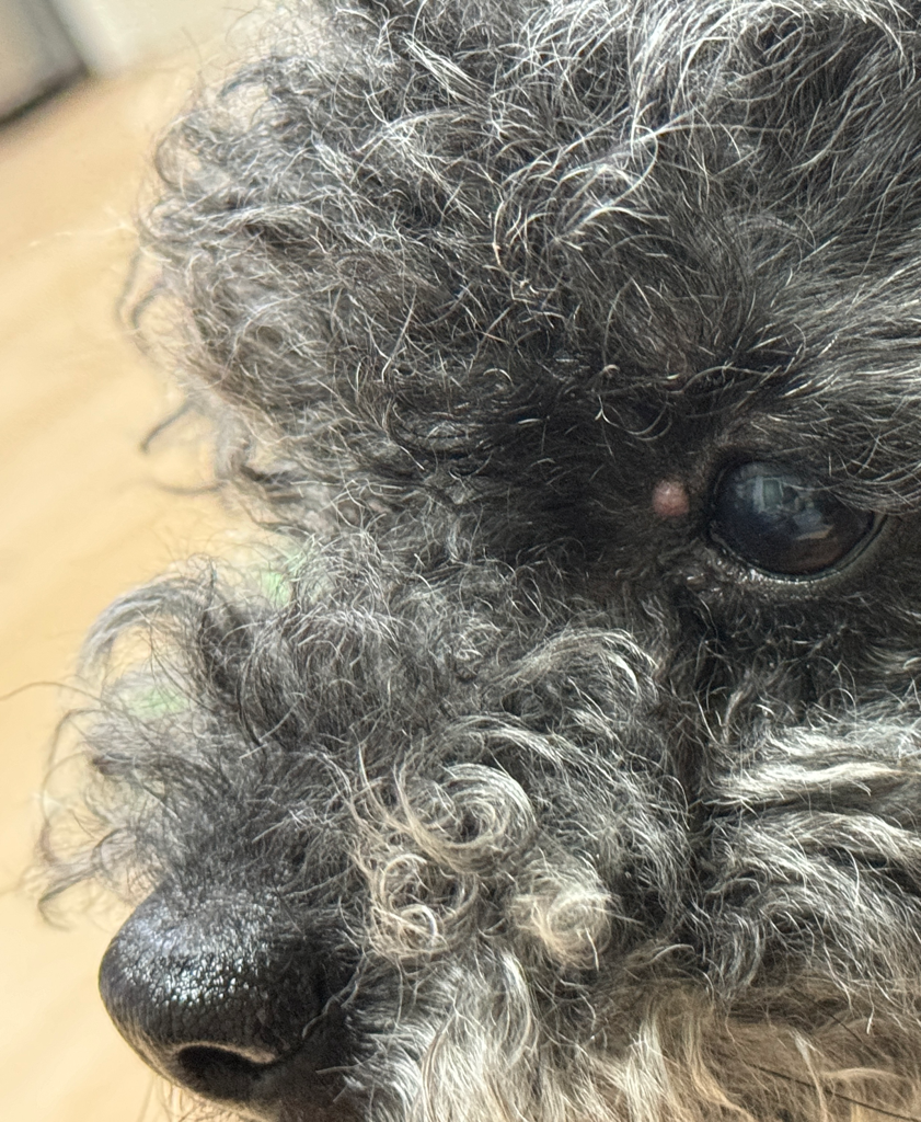 다래끼나 피지낭종이 생겼을 수도 있고 보통 나이가 어린 개체에서 생기는 조직구종 등 여러 가능성이 있습니다.