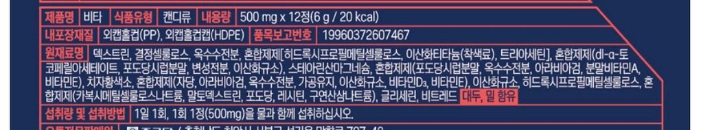 멀티비타 부스터샷이라는 해당 제품은 비타민, 옥수수전분, 덱스트린, 포도당 등 복합성분으로 확인됩니다.