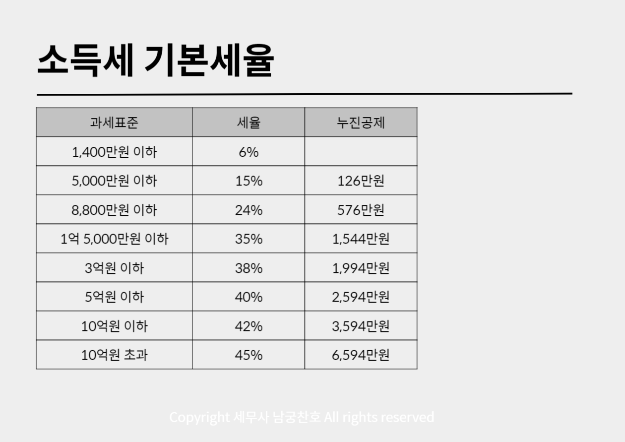 양도소득세 적용 세율은 소득세 기본세율입니다.