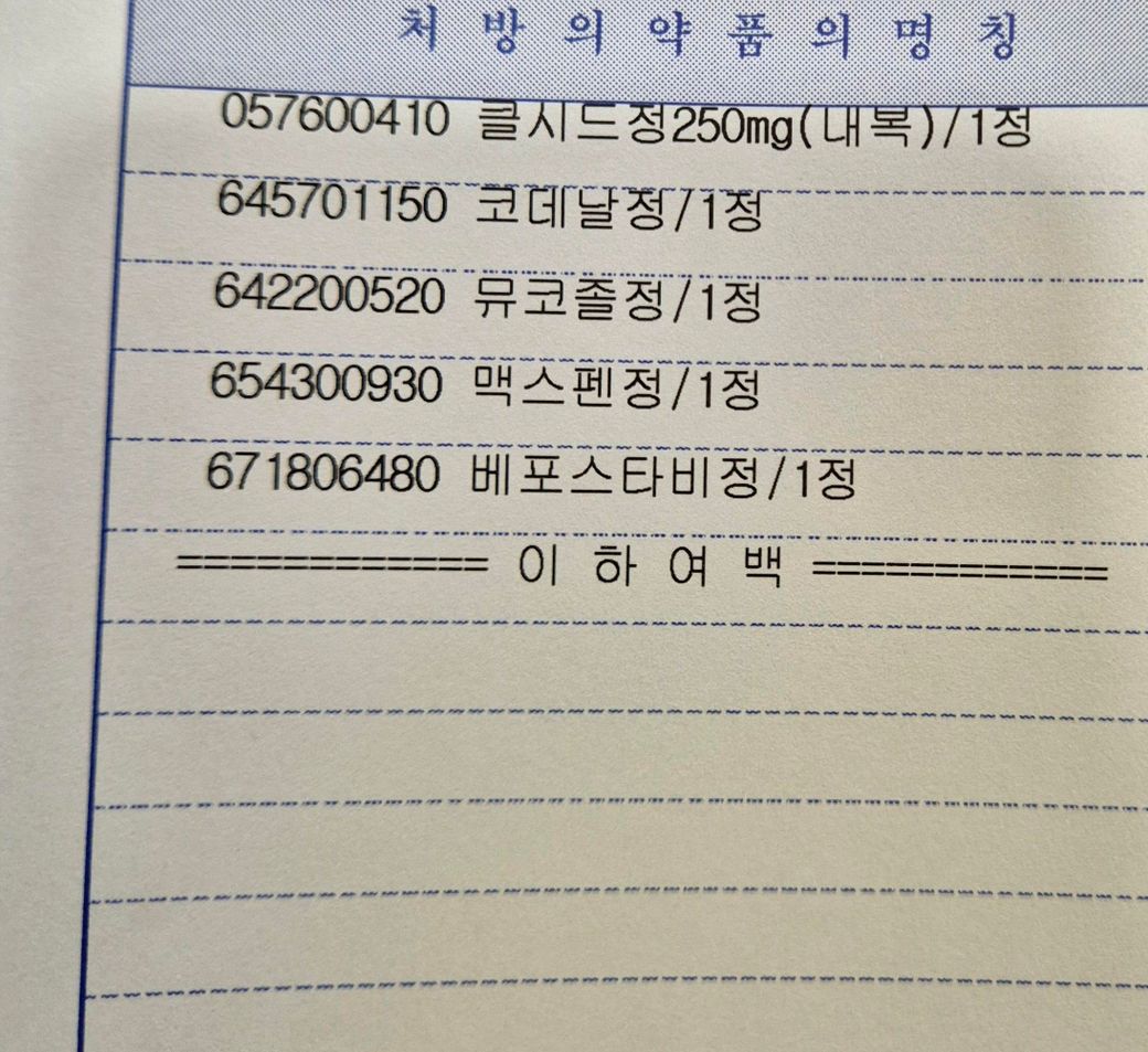 어제 몸살이 오고 인후통이 있어서 처방을 받았어요