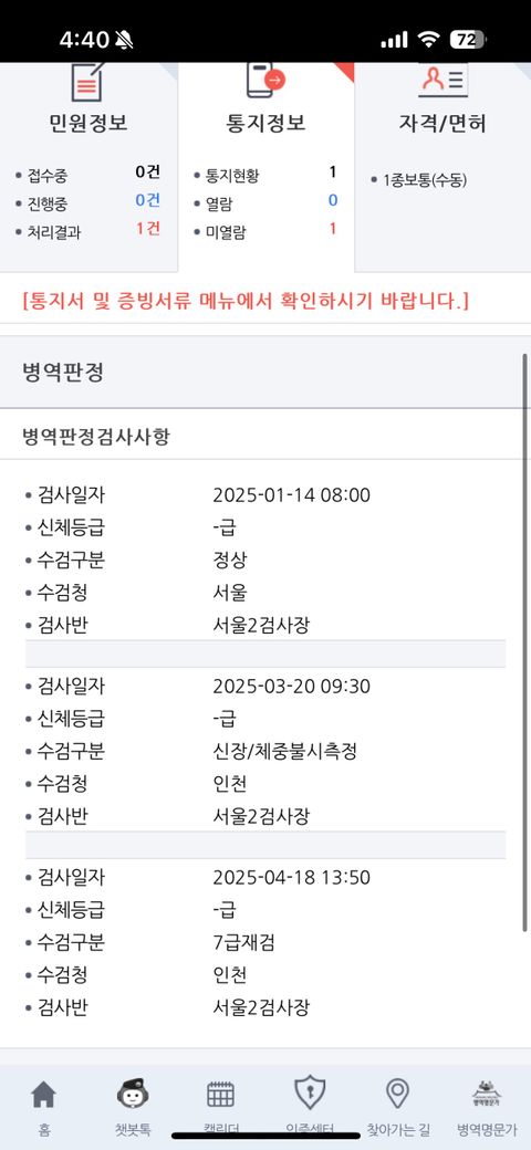 병무청 재검 질문 .........