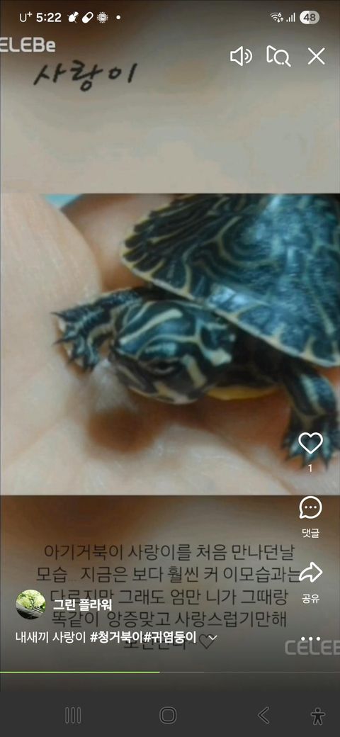 청거북이예요 양서류(육지,바다) 거북이예요.