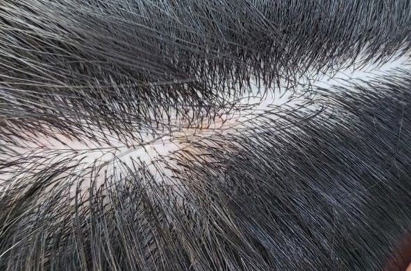 뒤통수 윗 부분(?) 정수리 주변에 작은 멍과 물집이 잡혔는데 모르고 긁어서 피도 살짝 났습니다.
