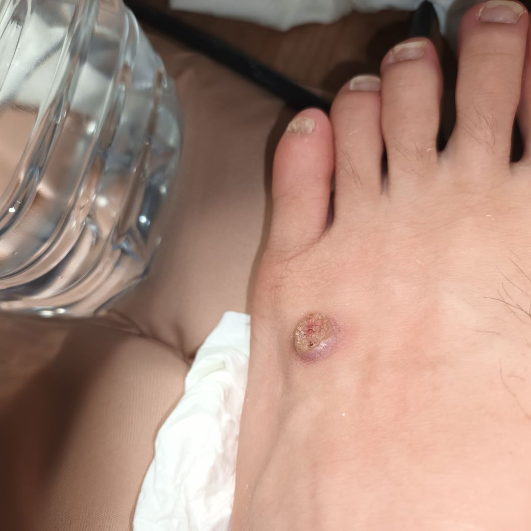 사마귀 감염으로 인한 병변으로 보입니다.