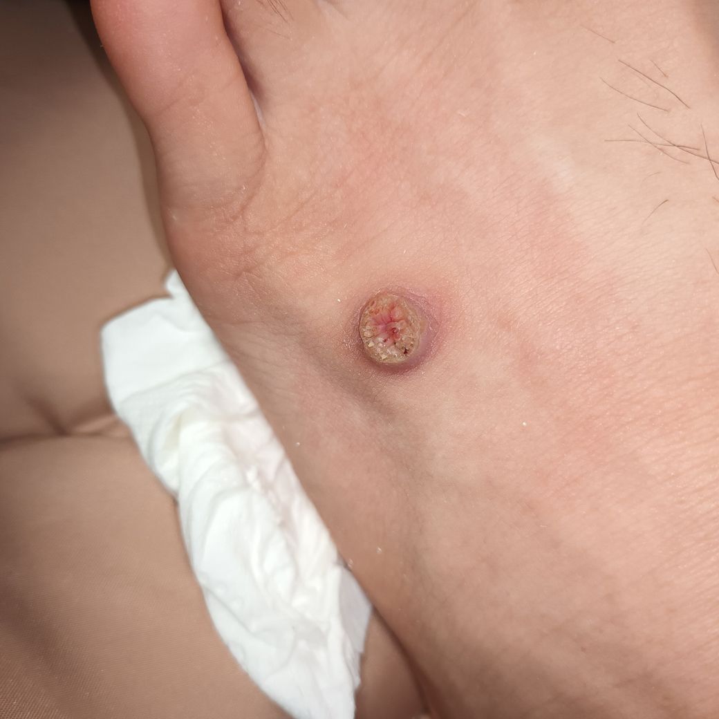 상처가 아니라 사마귀입니다. 냉동치료를 해야 됩니다. 자꾸 뜯으려고 해도 피만 나고 아프기만 하고 옆으로 퍼질 수 있으니 피부과에 가셔서 제거하시는 것이 좋습니다.