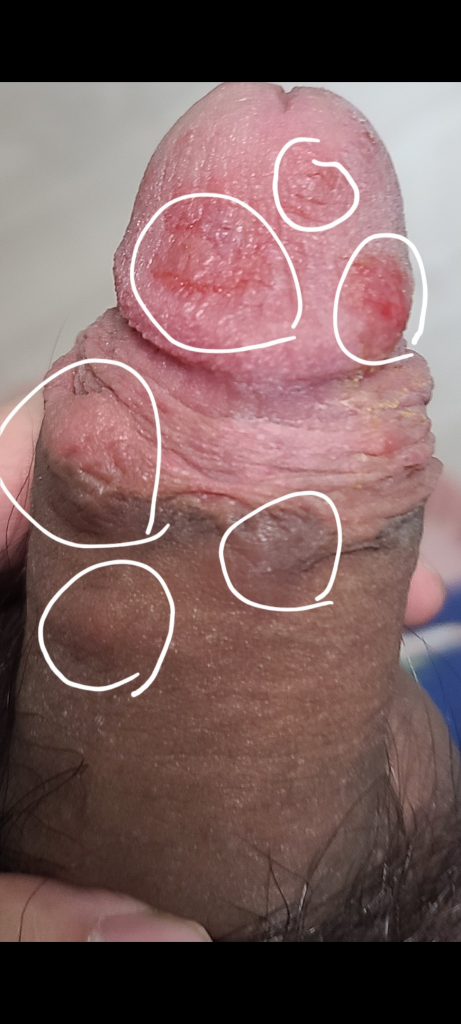 귀하의 경우, 손가락 사이사이에도 발진이 발생했다는 점에서 옴의 가능성을 의심해볼 수 있습니다. 그러나, 성기에 발진이 발생한 이후로 증상이 악화되었다는 점에서 성병의 가능성도 배제할 수 없습니다.