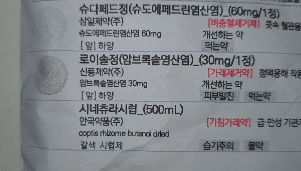 가루약: 슈다페드정(슈도에페드린염산염)/