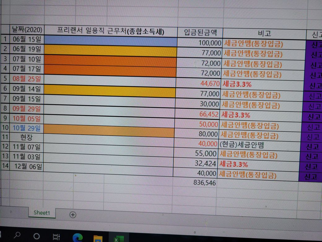 사업자3.3 %(세금제한금액) 총 836,546원