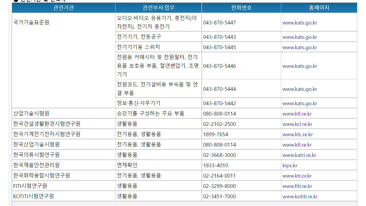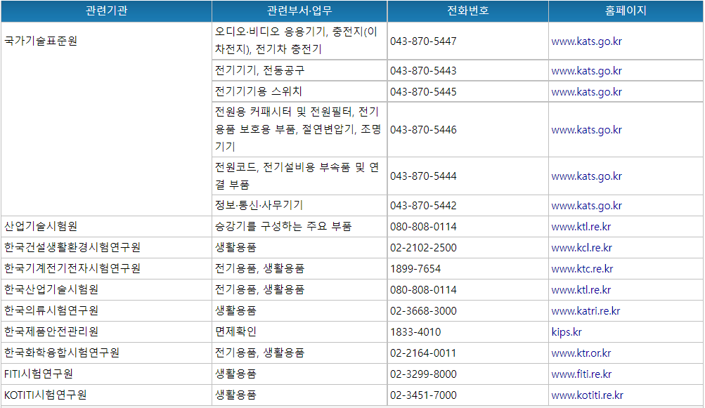 ● 건전지아울러, 이에 대한 안전인증기관은 아래와 같습니다.