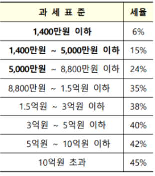 2023년 소득 발생분부터 적용되는 소득세율은 다음과 같습니다.