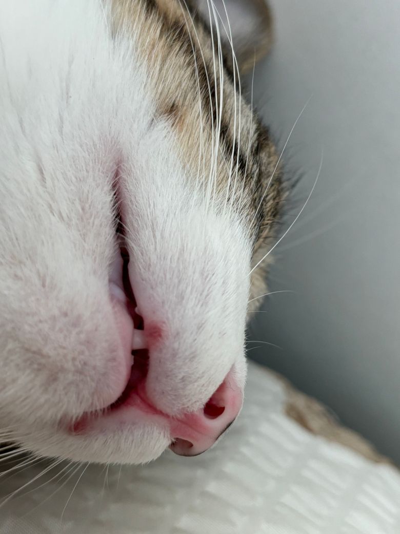 오늘 아침에 자다가 얖에 고양이 얼굴 봤는데 입술 양 옆에 빨간색으로 뭐가 난것처럼 있더라고요ㅜ