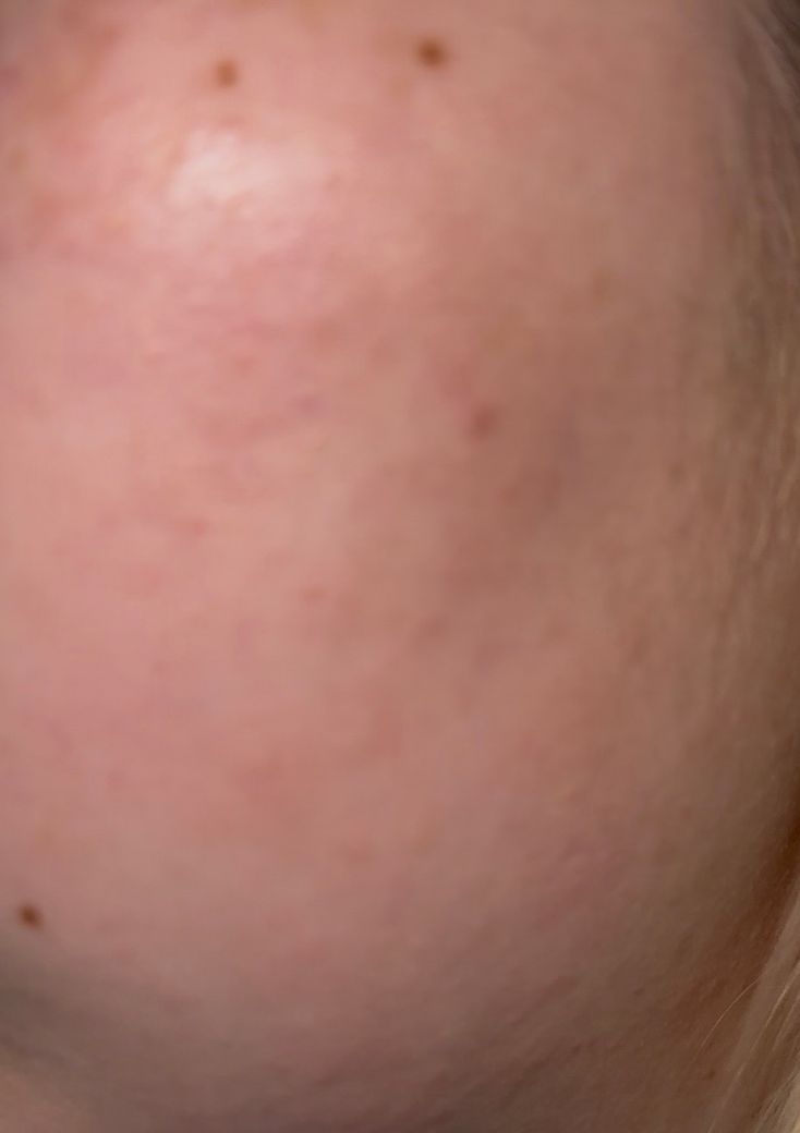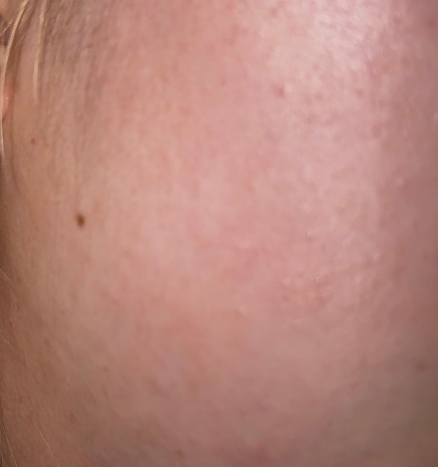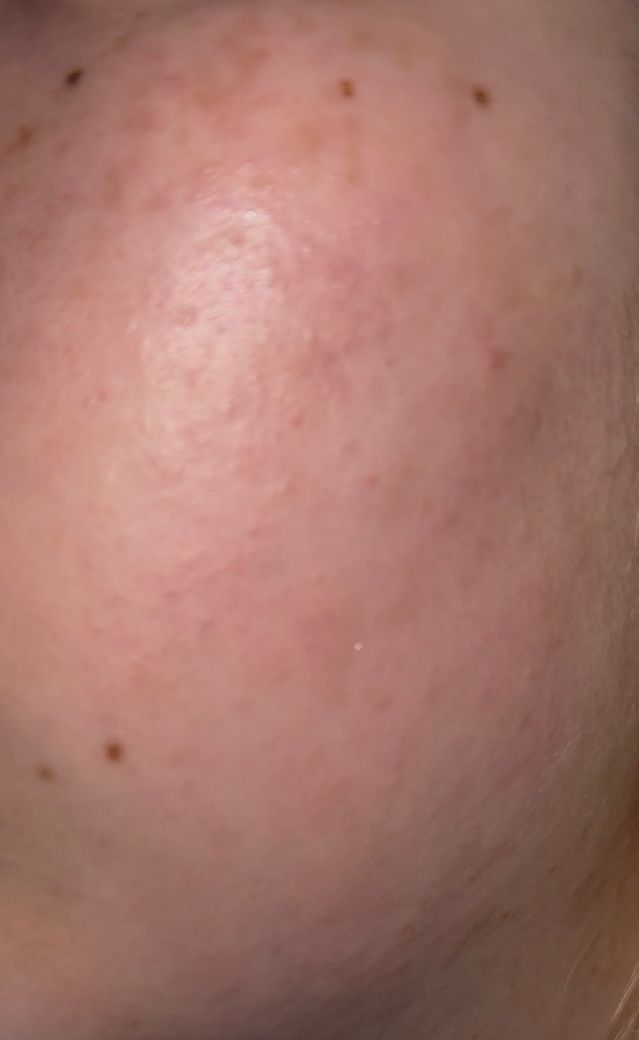 사진상으로는 뚜렷한 농포나 깊은 결절보다는, 볼 부위에 미세한 홍반과 작은 구진들이 퍼져 있는 양상입니다. “갑자기 발생 + 가려움”이라는 점을 고려하면 염증성 여드름보다는 접촉성 피부염 또는 자극성 피부염 가능성이 우선입니다.