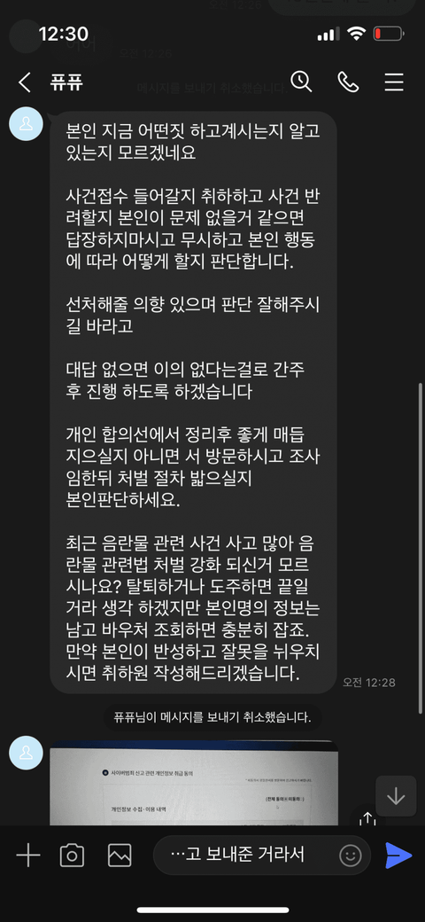 그 당시 상황을 캡쳐 못해서 어떤 커뮤니티에서 저랑 똑같은 상황이 있길래 사진을 저장해서 가져왔습니다 전 트위터에서 ㄲㅍ 해줄테니 라인:(아이디) 추가해서 디엠해라는 게시물을 보고 한번 호기심에 라인을 깔고 디엠을 했습니다 ㅎㅇ 하니까 ㄱㄱ 라고 하길래 보냈죠 그러니 저런식으로 보내서 뭐 합의 안하면 고소하겠다 라는 말을 하더라고요 그래서 제가 합의 한다고 하더니 얼마 있냐고 하더니 쟤가 3만원 밖에 없다고 했어요 그러더니 저 헌터가 3만원 보내주면 합의 하겠다라고 해서 그 사람이 계좌 알려주고 여기로 보내달라 해서 무서워서 입금했죠 입금을 하더니 갑자기 4만원을 더 달라고 하더러군요 그래서 진짜 죄송하다고 다음부터 안 그런다고 싹싹빌더니 시간안에 안 보내면 고소하겠다고 협박을 계속 하길래 무서워서 라인은 탈퇴하고 차단까지 한 상태입니다 너무 무섭고 일상생활이 지장이 갈 정도입니다 어떻게 되는걸까요..
