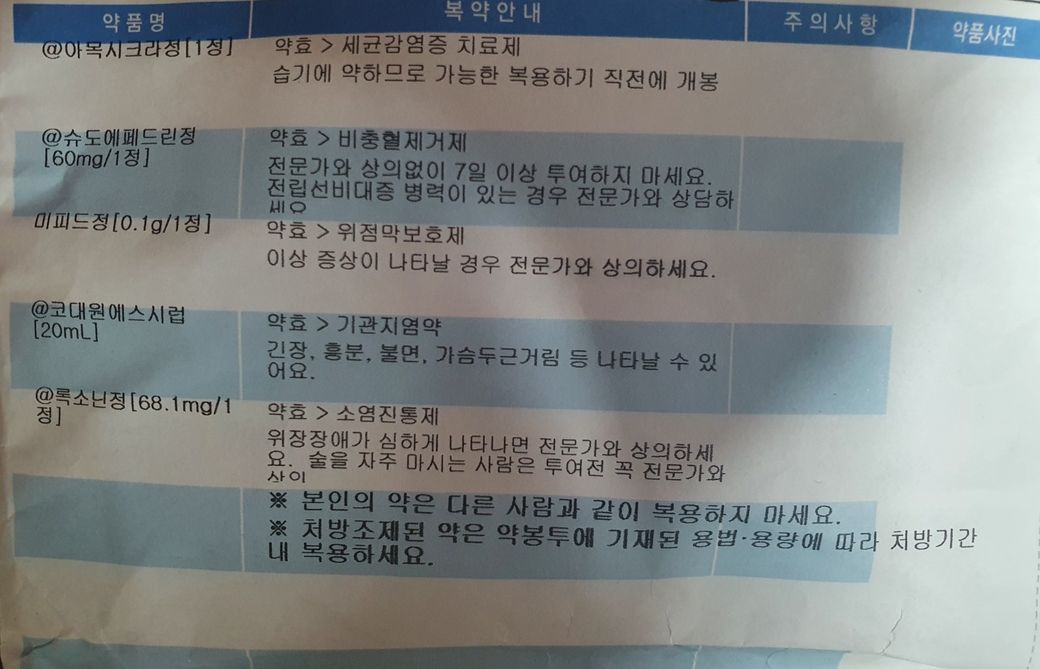 코로나 백신맞고 병원 감기처방약 먹었는데...