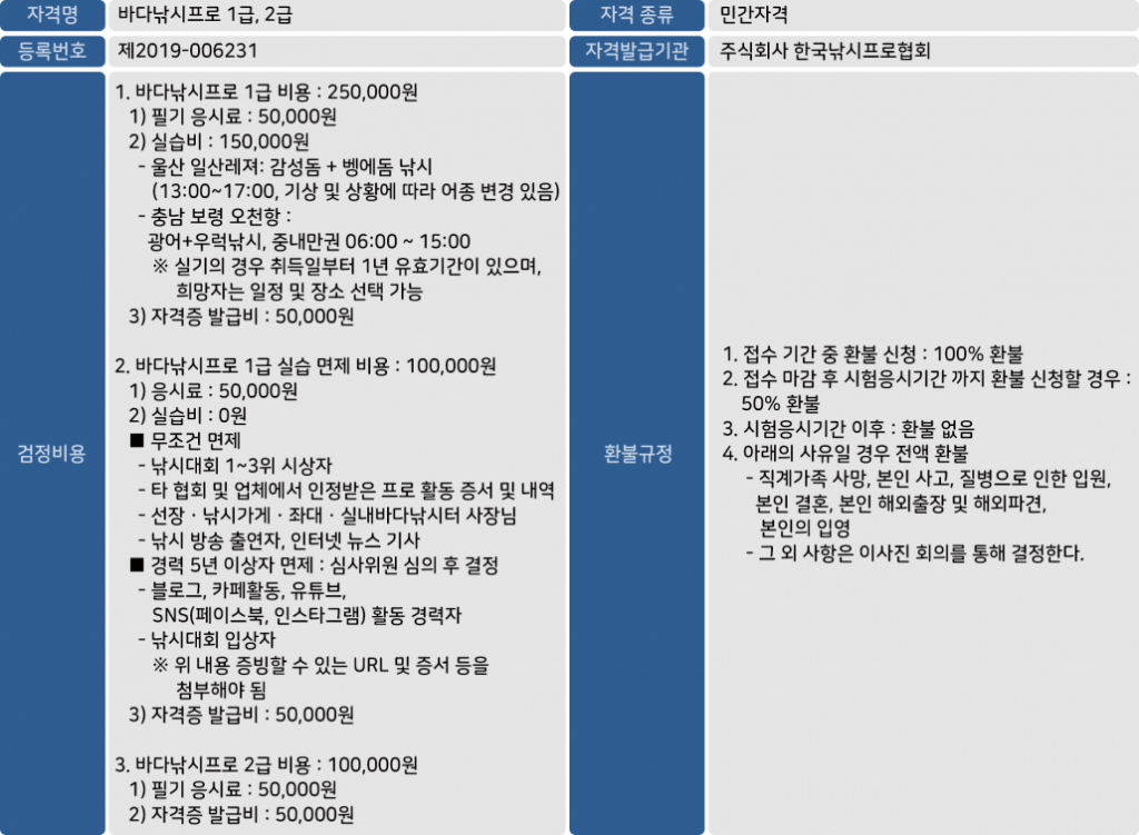 자격은 자격기본법에 따라 한국직업능력개발원에 등록하고 해양수산부에서 검토받은 민간자격이며, 공인자격이 아닙니다.
