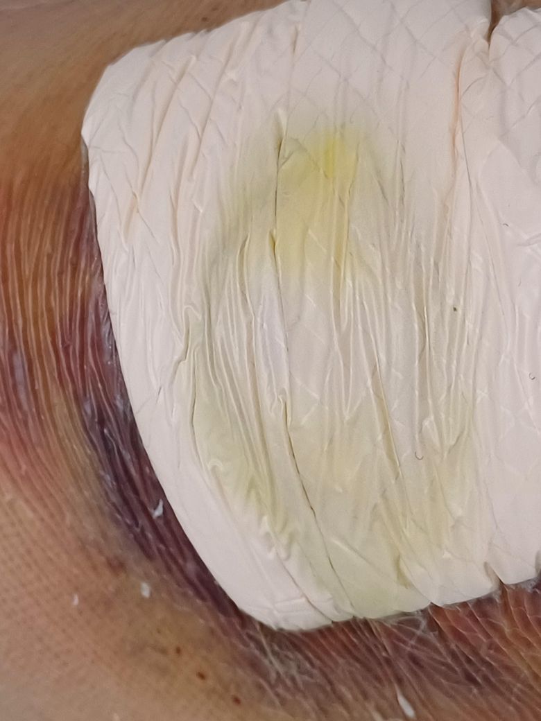 넘어진 상처이 붙인 습윤밴드 색깔이 이상해요 문제있는걸까요...?