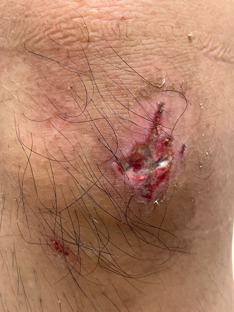 처음 다쳤을때 진물도 많이 나오고 아프고 그랬는데 지금은 진물도 고통도 좀 덜한 상태인데 상처가 아물고 있는 건가요? 색깔이 좀 이상한거 같아서요