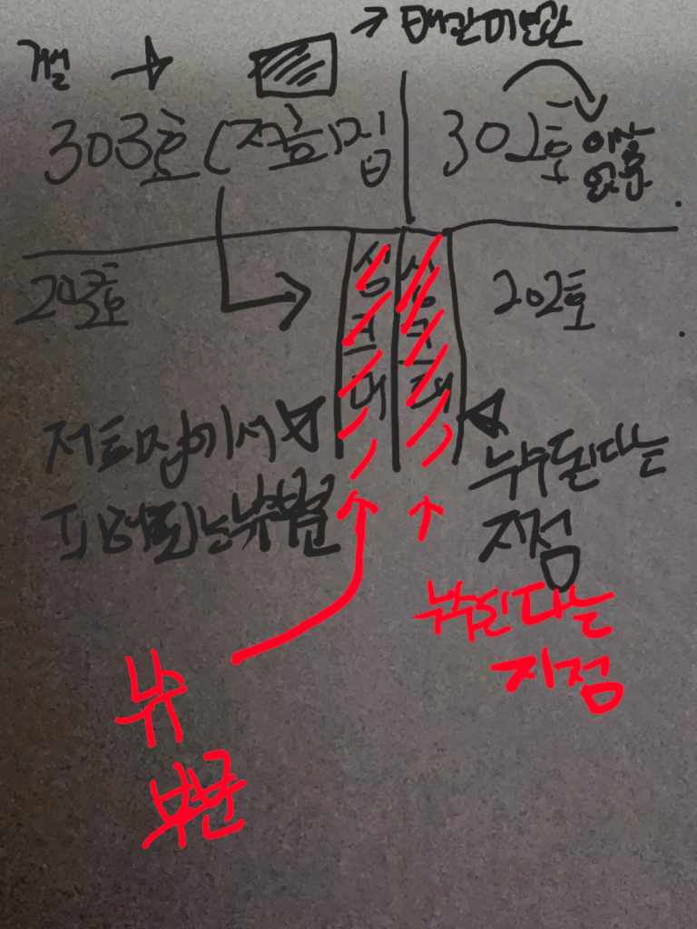 아랫집 옆호실 라인에서 누수되는 점. 그거에대한