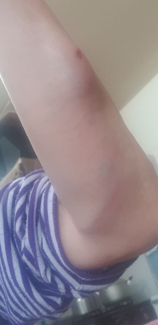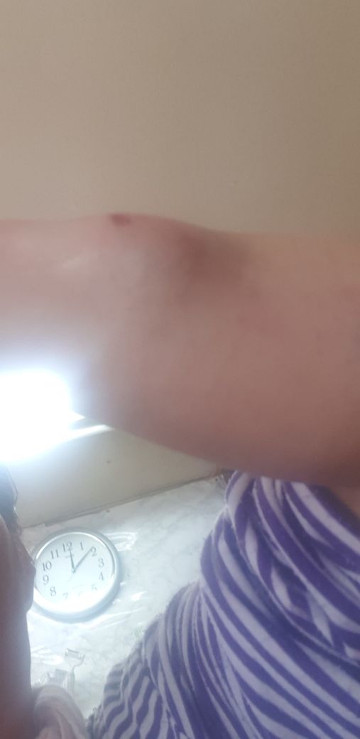 현재 상태로 보아서는 넘어지시면서 팔 내부의 혈관손상으로 인해 혈종이 지속적으로 차는 것으로 보입니다. 원칙적으로는 해당 부위의 차 있는 혈종을 제거하는 것이 원칙적인 치료가 되겠으나, 병원에 가시기 어려운 상황이시라면 냉찜질을 통해서 붓기가 가라앉는지 우선 보시고 그래도 커지는 양상이라면 병원을 빨리 가보시는 것이 좋겠습니다