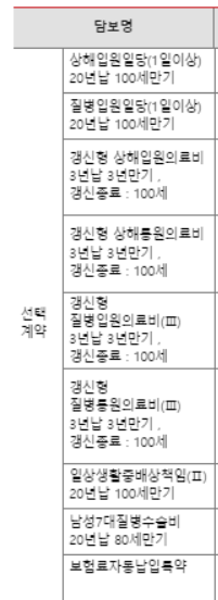 저는 2009년 3월에 가입했구요 선택계약 사항은 다음과 같습니다.