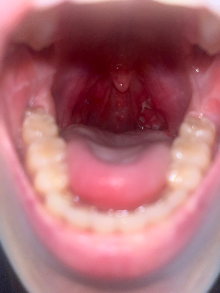 사진상으로는 편도부종외 특이할만한 소견이 관찰되는 것으로 보이지는 않습니다. 급성편도염이 호전되고 난뒤에도 목에 이물감이나 불편감이 지속된다면 이비인후과 진료를 받아 보시기 바랍니다.